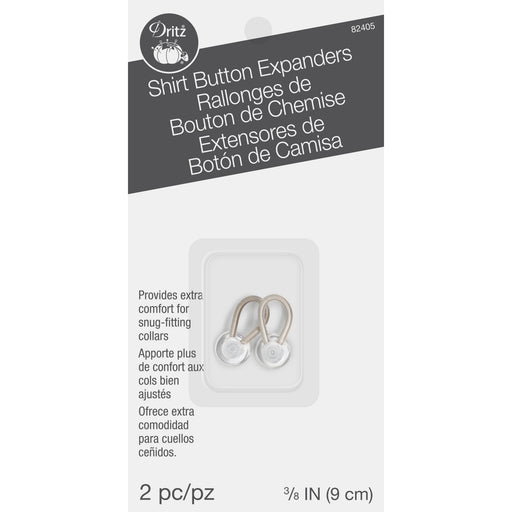 Dritz Shirt Button Expanders are a great fix for snug or tight fitting collars. Easily slip the loop spring end over existing shirt button to provi...