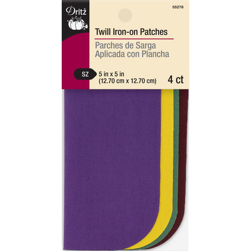 Twill Iron-On Patches, 5" x 5", 4 pc, Bright Assorted