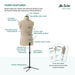 - Adjustable in precise increments at chest, waist and hips with pin cushion on neck cap for easy pin access and storage