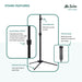 - Sturdy tripod base with metal legs and protective floor caps can be folded for compact storage