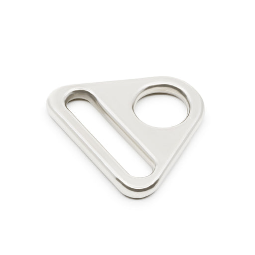 Flat triangle shaped hardware is designed to be used with a swivel hook to make detachable straps and handles on bags. The swivel hook attaches to ...