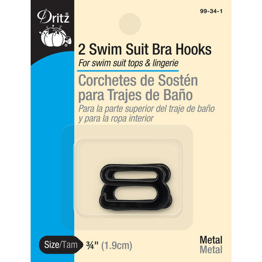 Use the Dritz 3/4'' Wide Swim Suit Bra Hooks Black Pack of 2 to replace the damaged or worn-out hooks of your swimsuits and lingerie. These hooks c...