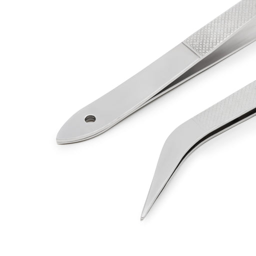 Use tweezers as you thread overlock machines. Angled end on tweezers helps reach into areas with limited space or restricted access. Includes 1 Pai...