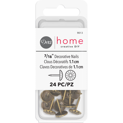 Dritz Home Decorative Nails provide function and fashion. These 7/16" antique brass decorator nails feature a classic daisy design. Designed to hel...
