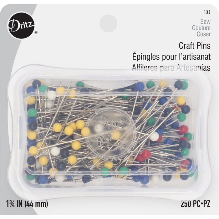 The Dritz Nickel Plated Steel Craft Pins are a useful addition to your art and craft tool kit. These pins feature vibrant plastic heads and are packaged in a reusable, see-through storage box. They can be used to penetrate fabric while you sew or hold pieces of your craft project in place.