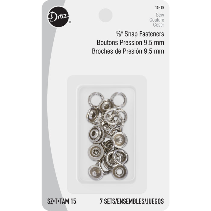 Use the Dritz Snap Fasteners in place of buttons to fasten your garments. This pack consists of seven sets of 3/8-inch snaps. These snaps can be used for shirts, pajama pants, toddler clothing, snap-on hoods, interior pockets and much more. Durable and easy to work with, these functional snap fasteners are available in a variety of finishes, each sold separately. Work on lightly padded surface. Snaps can also be applied with Dritz #16P Pliers, #670/65 Tool Kit and #16K Easy Attacher Kit.
