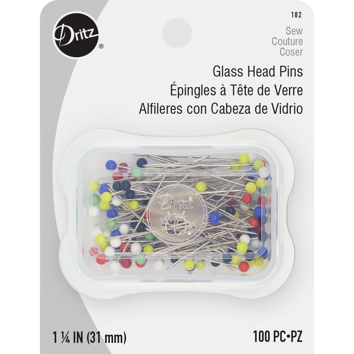 Dritz Glass Head Pins are heat-resistant and can be ironed over without damaging fabric. These pins are designed to pierce through delicate fabrics and are great for machine piecing. Nickel-plated steel