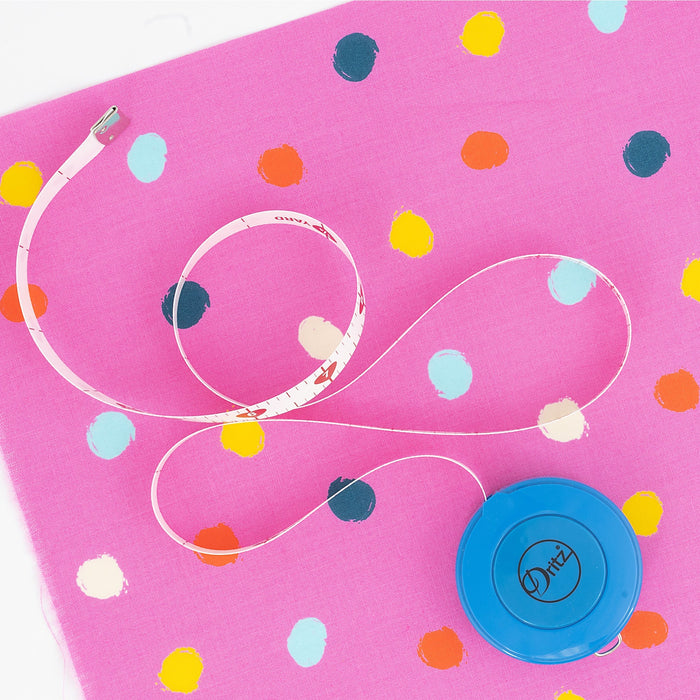 This premium-quality tape measure includes standard measurements on one side and yardage measurement on the other for easy fabric measuring and calculations – AND it’s ready to connect to a lanyard or scissor leash so it stays close at hand