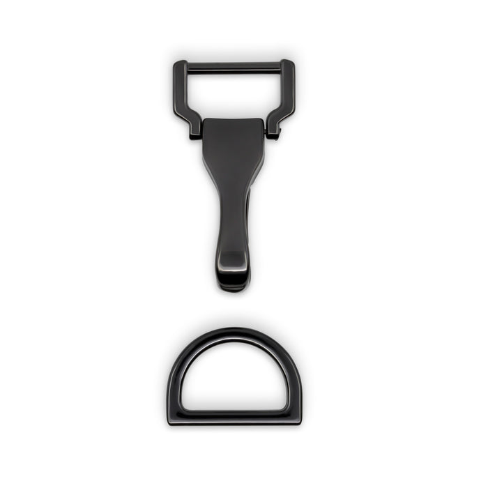 - D-Ring is for a 1" wide strap/tab; hook will fit a 7/8" tab