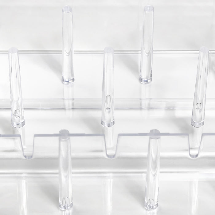 Keep your spools and bobbins conventiently at your disposal with the Dritz Thread Box. This plastic box includes thread spindles that hold various size spools and bobbins. The clear container allows you to easily view various color threads, and the slots along the upper edge of the box help guide the thread for easy use while hand sewing. This stackable box can be easily stored away when not in use. It is a great addition to any sewer's collection.