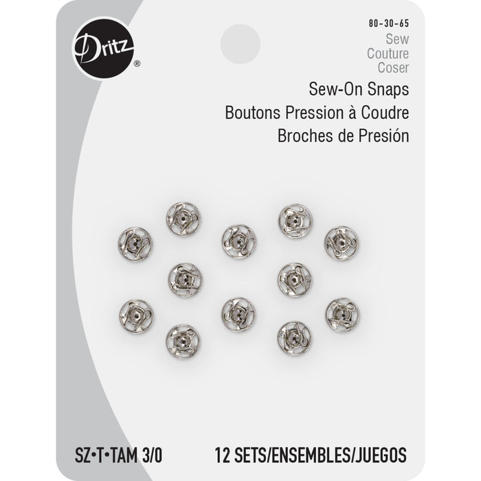 Use the Dritz Size 3/0 Sew-On Snaps Nickel Pack of 12 as garment closures for your coats, sweatshirts, cardigans and other apparel. This pack includes 12 nickel sew-on snaps, which are made of brass. Crafted for durability and toughness, these sew-on snaps are easy to use and a valuable addition to your sewing kit. Choose from a variety of sizes to suit your specific requirements.