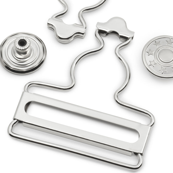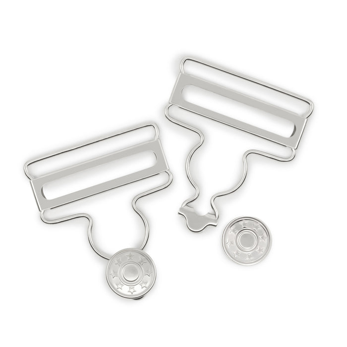 1-3/4" Overall Buckles with No-Sew Buttons, Nickel, 2 pc