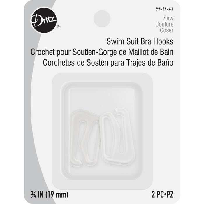 Use the Dritz 3/4'' Wide Swim Suit Bra Hooks Clear Pack of 2 to replace the damaged or worn-out hooks of your swimsuits and lingerie. These hooks can be easily attached to your bra with the help of a ballpoint needle. You can also use these durable bra hooks to repair your swim suit tops.